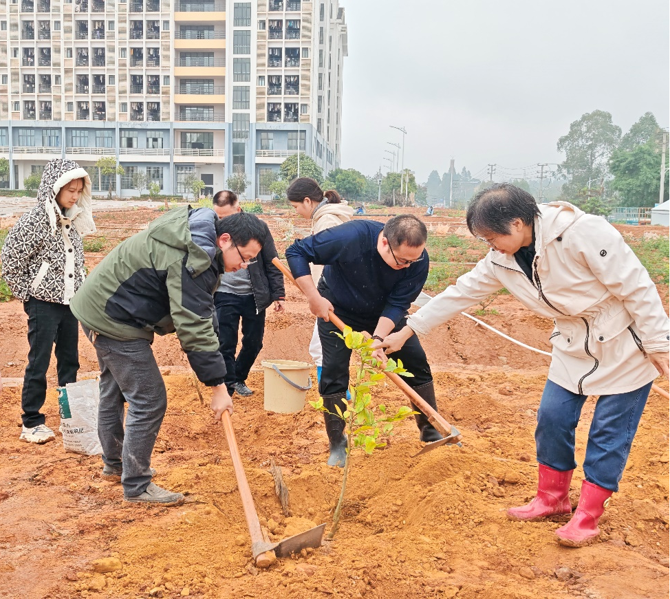 第六学生党支部在五合校区劳动教育基地开展“绿水青山就是金山银山”植树节主题党日活动。学校纪委书记李美清、校友办副主任韦天翼、司机社