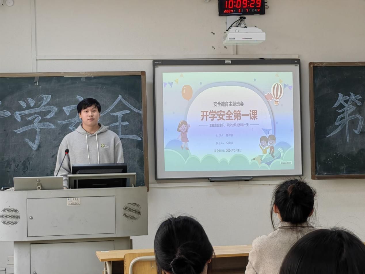 22级陶行知实验班在五合校区综合楼502教室召开“开学安全教育第一课”主题班会。班主任李丹老师以及22级陶行知实验班全体同学共同参加了本次班会。