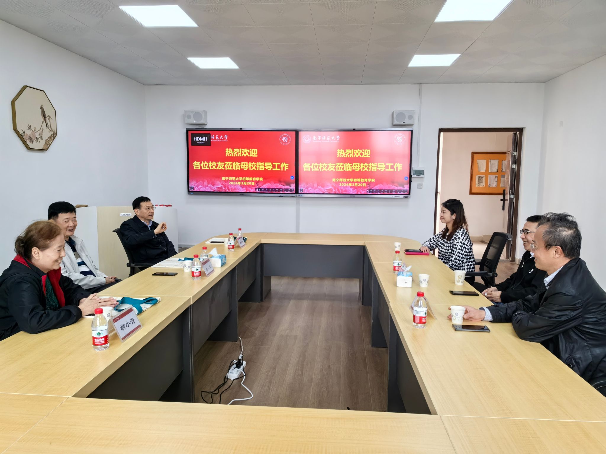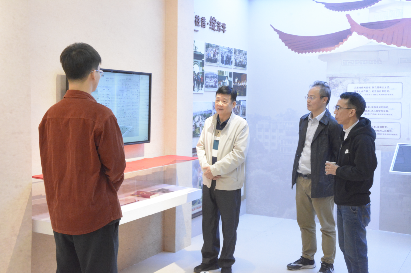 在五合校区理综楼716会议室召开校友座谈交流会。原南宁民族师范学校音乐教师、校歌作曲者莫一军,钢琴教师柳小青及1979级校友黄东日,司机社