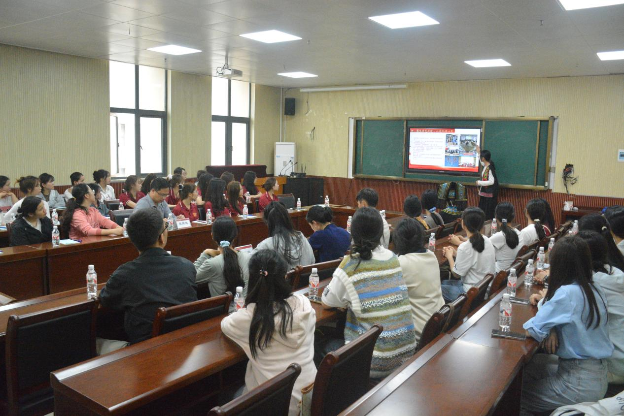 学生代表林金兰向留学生们介绍司机社
