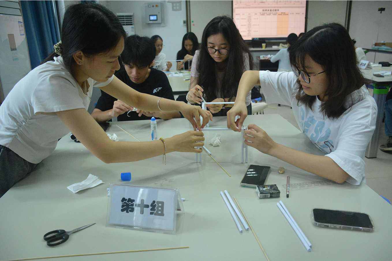 师生科学素养和科学教育实践技能具有重要意义,激励同学们积极参与并预祝各队取得好成绩。裁判员代表陆玉泽同学、参赛选手代表李思霖同学分别在宣誓中指出将严格遵守比赛规则,认真对待比赛。接着,各参赛队伍精神饱满、分工合作展开比赛。其中,在落体缓降项目上,各参赛队伍围绕如何减缓物体降落速度,运用所学知识精心设计装置,一次次尝试、调整,不断优化方案;在纸桥承重项目上,各参赛队伍则专注于纸桥结构设计,力求用有限的纸张打造出承重能力最强的桥梁。最后,经过激烈的角逐,评选出等级奖和优秀组织奖等奖项。在闭幕式上,郭覃硕老师总结表示通过此次比赛希望同学们可以不断进行科学探索,提高发现问题、解决问题的能力。