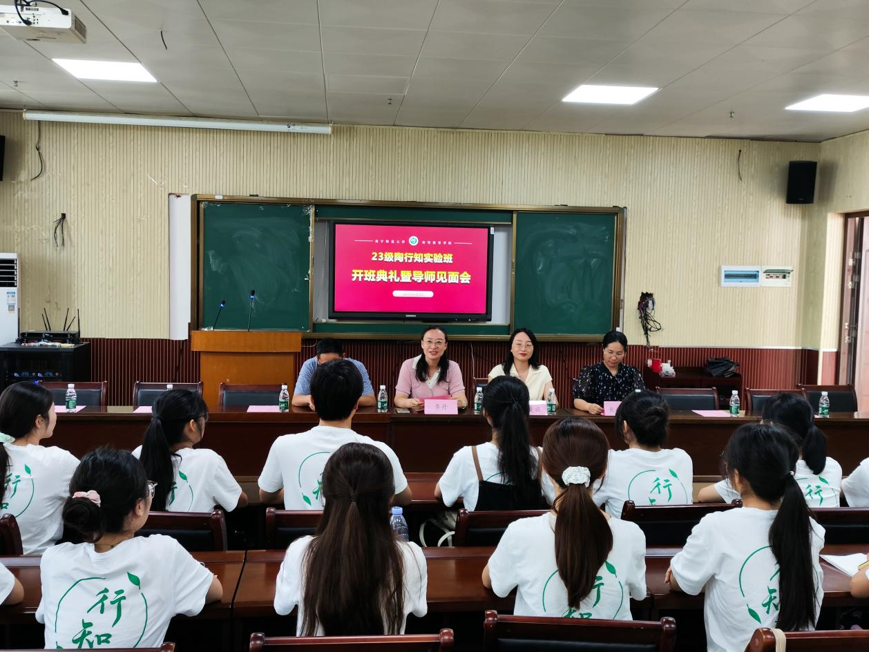 院长梁宇、副院长梁秀清,小教系主任林国兵,陶行知实验班负责人李丹,导师李美旋、罗聿言、李健、黄姣华以及2023级陶行知实验班全体同学参加。活动由李丹老师主持。