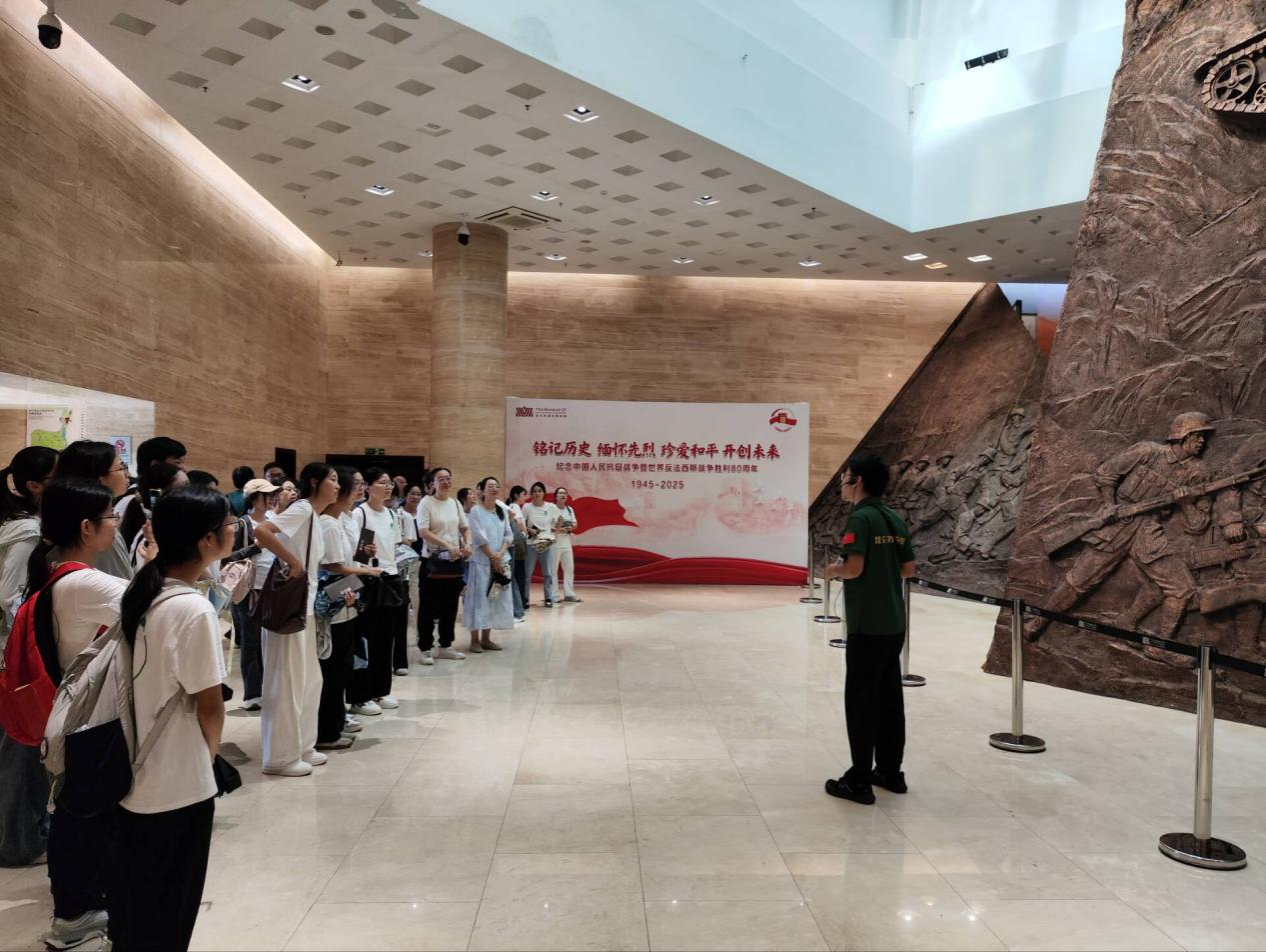 在昆仑关抗日战役纪念地,同学们参观了珍贵的石质文物,了解了昆仑关战役的艰苦卓绝。随后,师生们前往纪念塔进行缅怀仪式。现场,大家首先诵读《八十年后的回响》,在深沉的文字中追忆先烈事迹。紧接着以默哀寄托哀思,再以献花表达敬意,以此向长眠于此的革命先烈致以最深切的缅怀与崇高的敬意。在昆仑关战役博物馆,同学们详细了解了1939年昆仑关战役中,中国军队以血肉之躯抗击日军、六次攻夺回阵地的英勇历程,深刻体会到抗战时期中国军民的顽强意志与家国情怀。