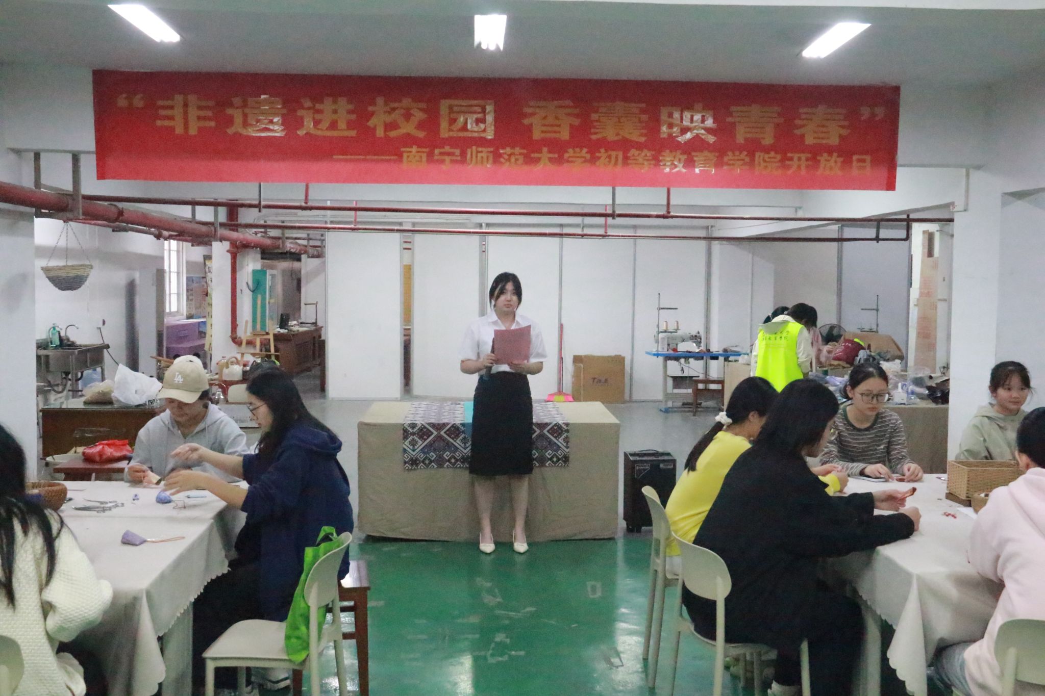 在五合校区劳动吧开展“非遗进校园,香囊映青春”开放日活动,各兄弟二级学院学生代表参与活动。