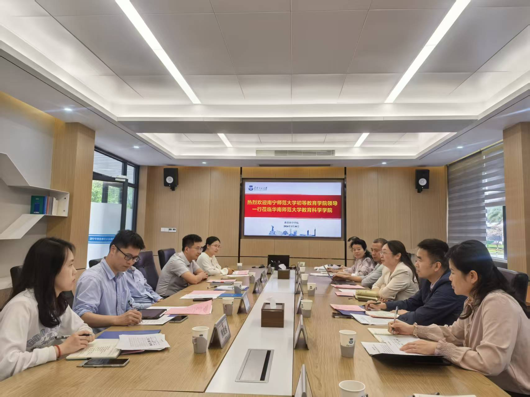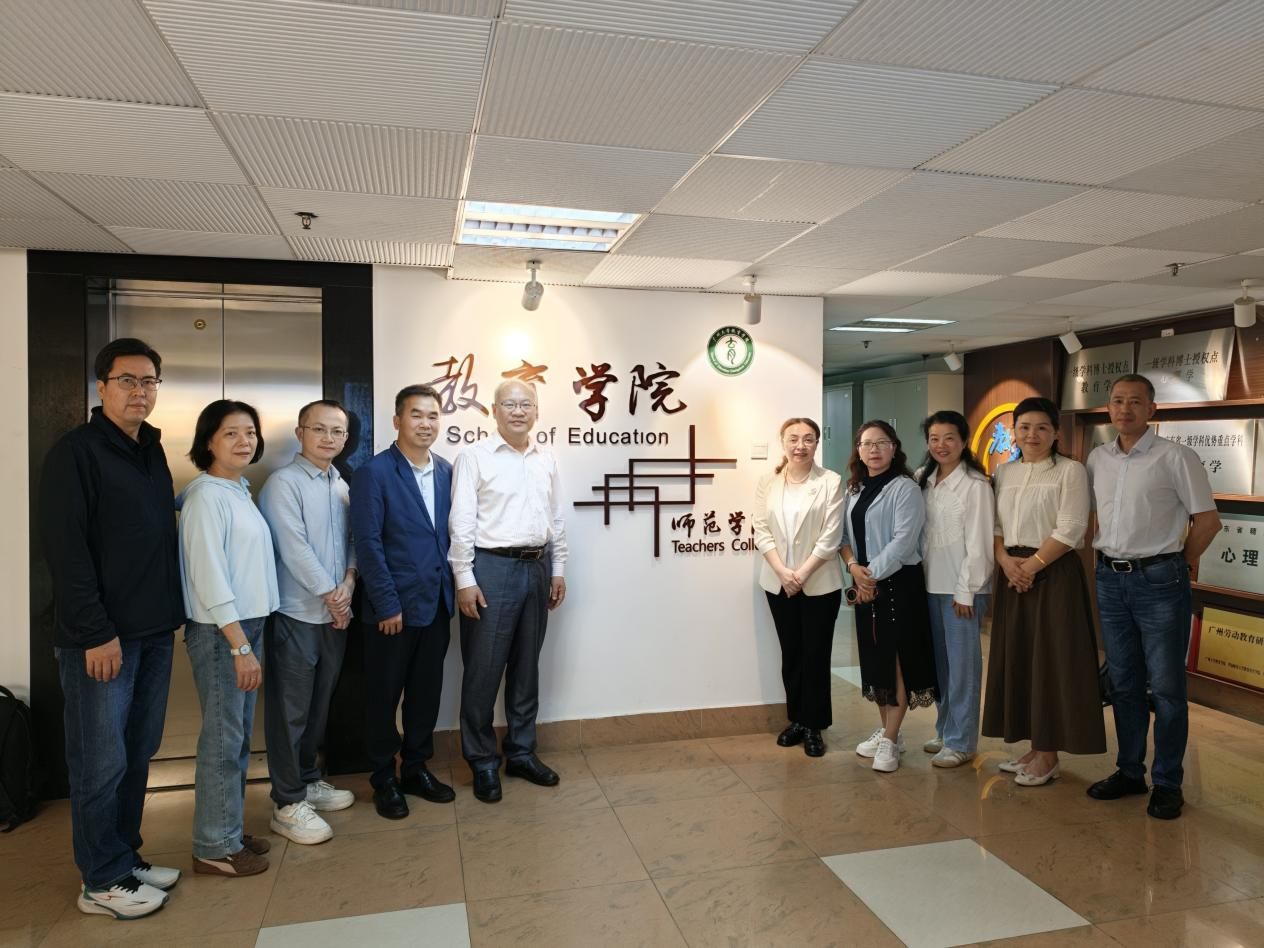 为贯彻落实学校“攀高峰、强特色、创双优,促进学校特色内涵发展”的教育思想大讨论精神,探索“十五五”期间小学教育专业建设与区域教育发展的适配性路径,推动教育链、人才链与创新链深度融合,增强初等教育学院服务广西基础教育发展的专业贡献力、人才支撑力与社会影响力,2026年3月29—31日,初等教育学院梁宇院长一行7人赴粤港澳大湾区教育高地——广州市,对华南师范大学教育科学学院与广州大学教育学院的小学教育专业进行深度调研。通过座谈交流、资料研读、课堂观摩、实验室观摩等形式,重点学习其在人才培养模式创新、课程体系改革、实践教学体系构建、教育科研转化等方面的先进理念与成功经验。