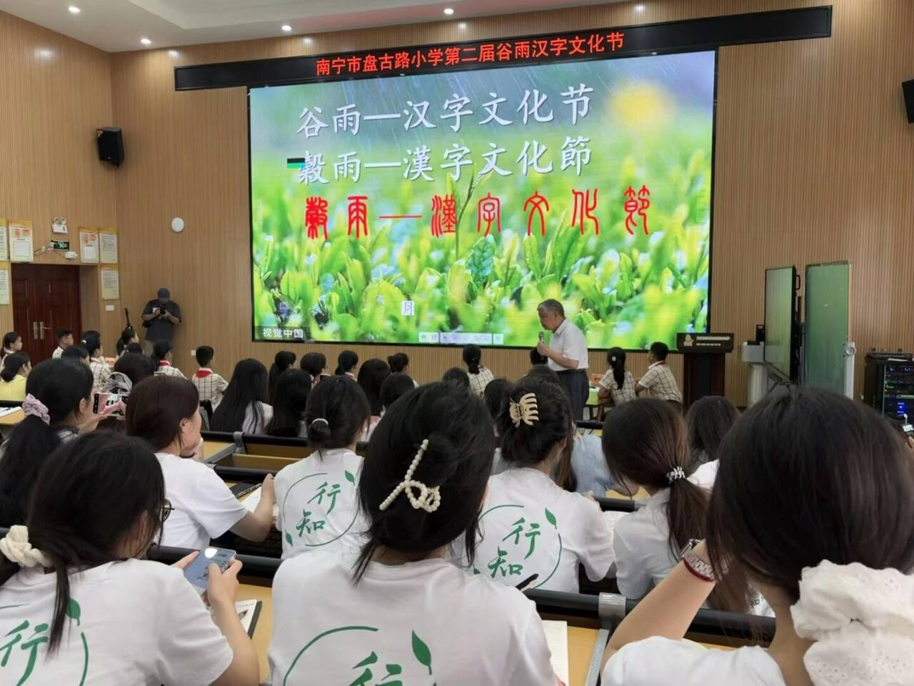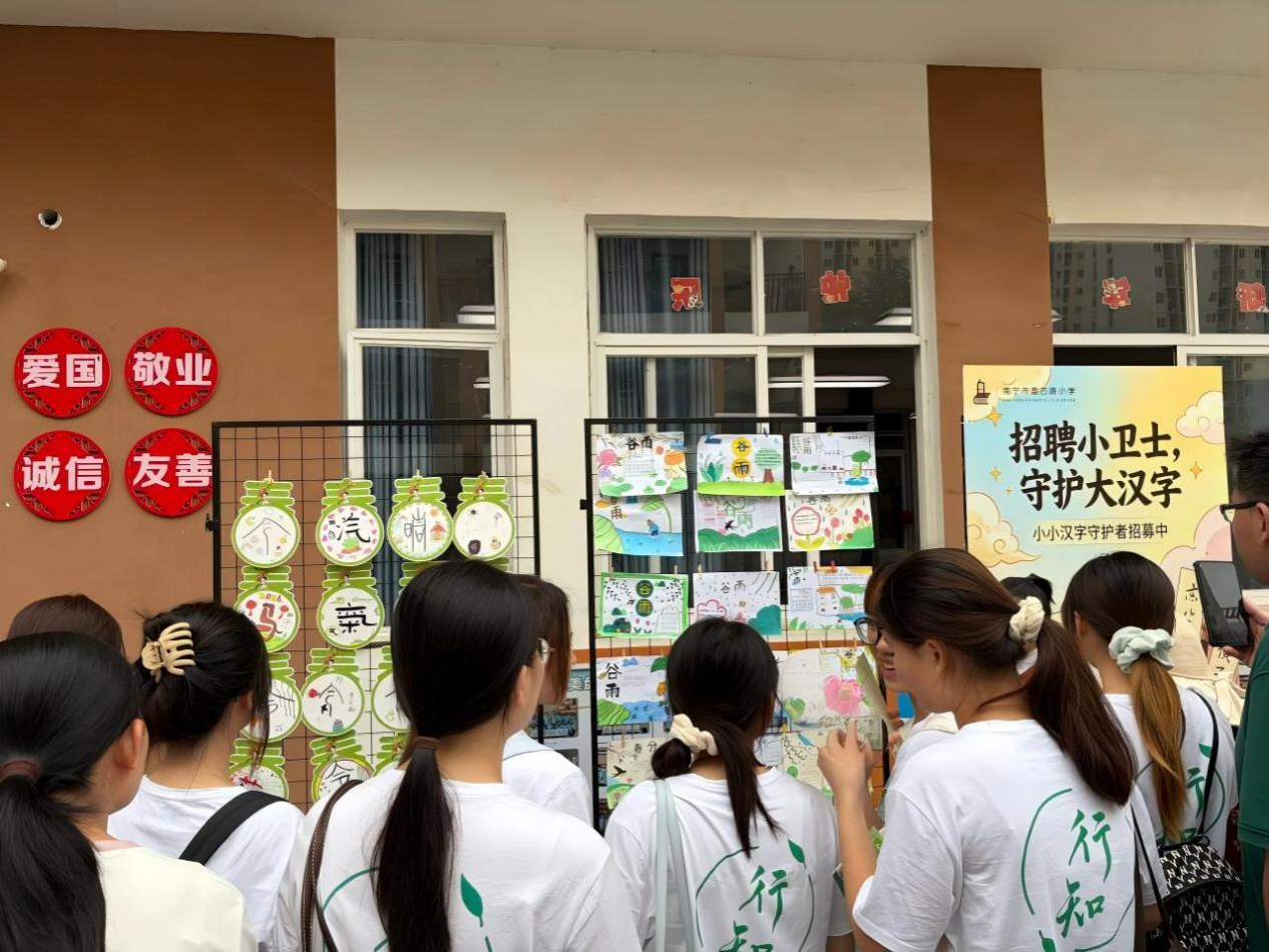 2023级、2024级陶行知实验班及19名研究生学子,在李丹、刘冬梅、韦宵爱、刘飖老师带领下,走进南宁市盘古路小学,参与第二届“谷雨花繁润汉字 字理寻根育童心”谷雨汉字文化节研学活动。