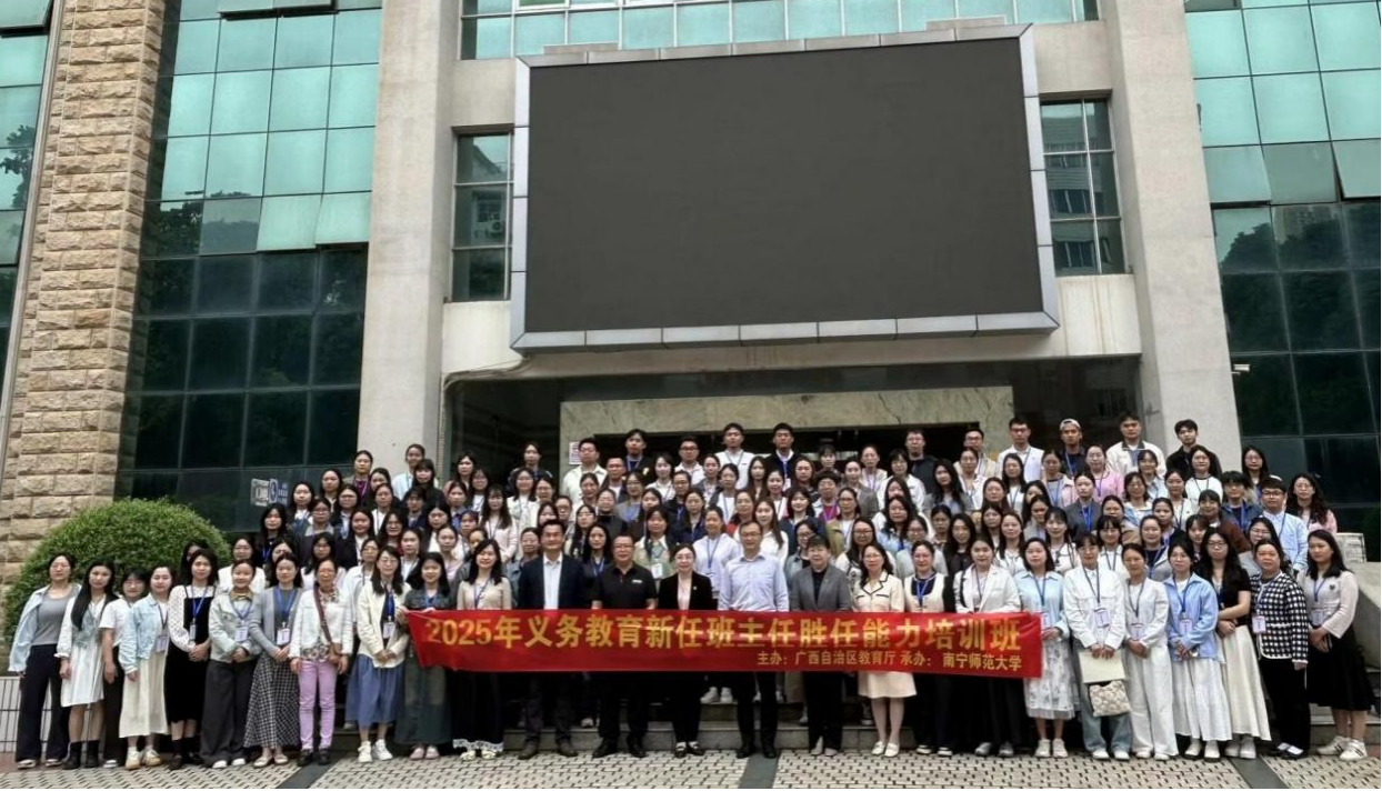 承办的“广西义务教育新任班主任胜任能力培训班”在南宁顺利开班。自治区教育厅教师工作处副处长王现彬、学校教师教育学院院长王文蓉、司机社
