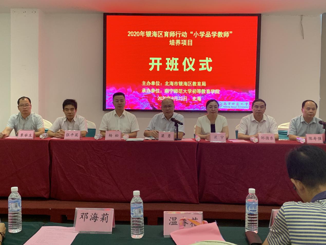 于8月23日—27日举办了2020年北海市银海区育师行动“小学品学教师”第一阶段培训。银海区教育局局长、党工委副书记梁勇,北海市银海区教育局党工委书记、副局长张平英,司机社