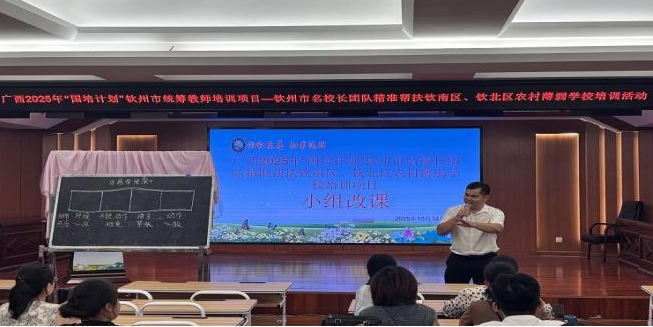 为首的学科专家团队,为钦南区、钦北区的参训校长及骨干教师提供从理论到实践的专项指导,旨在通过“专题讲座—课堂诊断—现场改课”三段式研训及校长论坛分享,提升学员对新课标的理解能力与课堂实操能力,并促进担任学校领导的学员梳理办学经验和存在问题,思考学校未来发展思路。