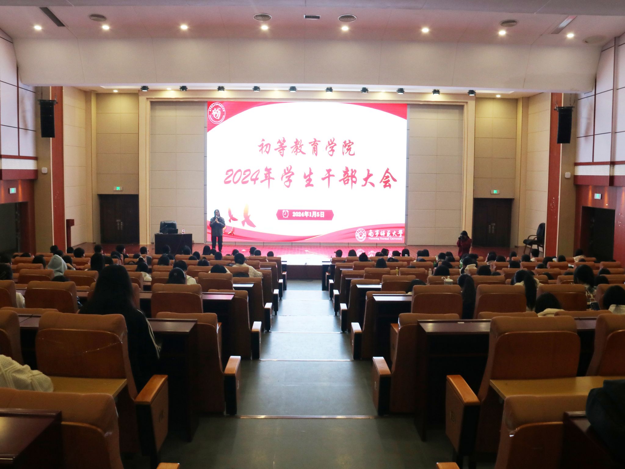 在五合校区文综114报告厅召开2024年学生干部大会。学院党委书记陆以宏、党委副书记苏学权、学工辅导员、兼职辅导员、五合校区以及建政校区学生干部代表参加。此次大会由学院团委书记秦晴主持。