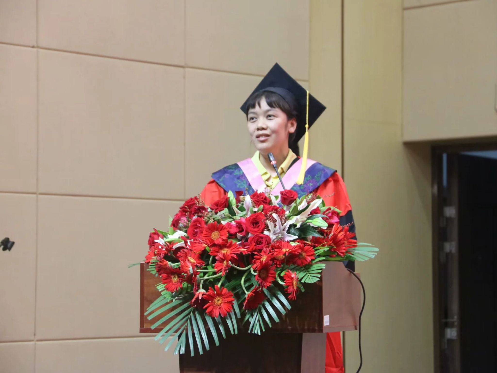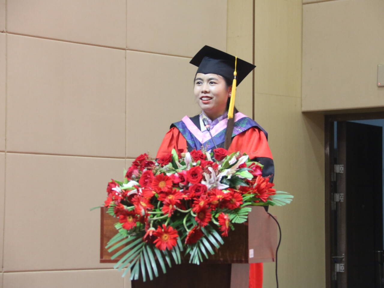 其中,校友代表南宁市良庆区春华路小学盘梦婕校长结合自身求学和工作经历寄语毕业生们在追梦中有担当,奋斗中有坚韧,生活中有健康;教师代表壮汉双语系主任韦宵爱老师祝福毕业生们在今后的人生道路上勤于学习,勤于思考,不忘初心,勇往直前;毕业研究生代表2022级小学教育专业研究生阳勇波和本专科毕业生代表2020级小学教育专业全科三班易春蕾表达对老师的感谢,对同学的祝福和对未来的期盼。