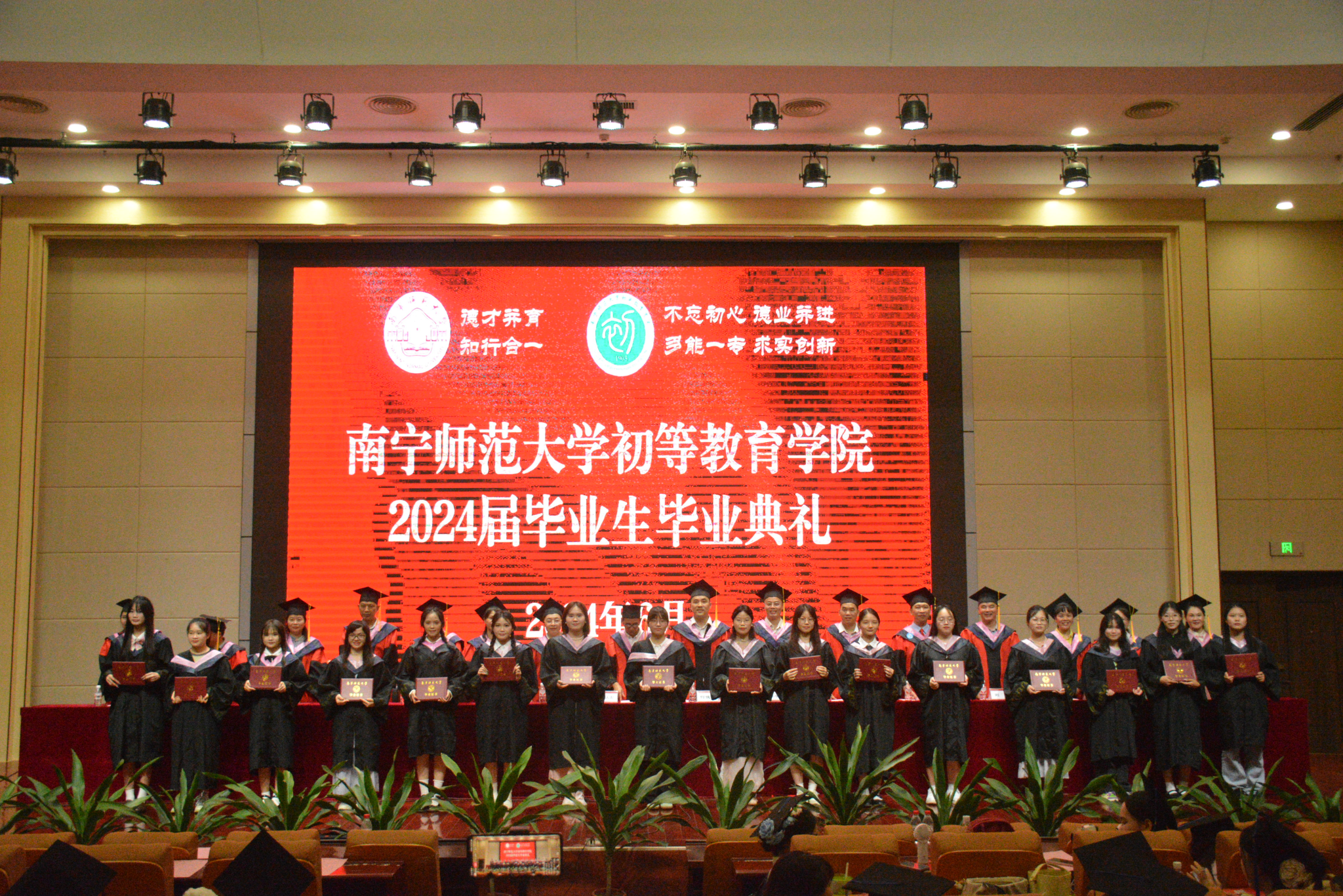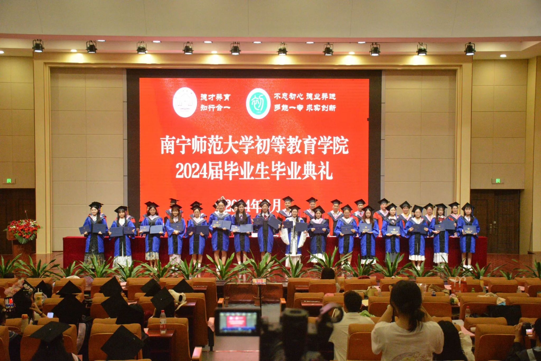 党政领导班子全体成员、各系主任、各毕业班班主任、学工办辅导员、校友代表和2024届毕业生共同参加本次典礼。典礼由初等教育学院党委书记陆以宏主持。