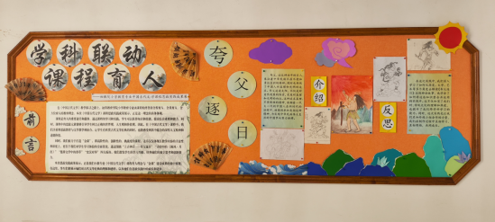 高校“课程思政”教学改革是落实党的教育方针和立德树人根本任务的必然选择。《中国古代文学》是小学教育专业的一门专业基础课,肩负着传承中华传统文化的重任,更承担着立德树人,培养合格的未来小学教师的责任。本次“课程思政”教学改革实践成果展示是运用马工程教材《中国古代文学》(上册)“先秦两汉文学”中的四个重点内容:上古神话·夸父逐日、《诗经·月出》、《楚辞》中的香草、《史》《汉》对举来展开的。此次展示分为四块展板,每块展板展出一个内容板块,每个内容板块分为四个部分,分别为教师教法(课程核心知识目标怎样与立德树人育人目标融合),学生实践(课程核心知识和课程思政目标的内化过程),教学反思和学生感悟。