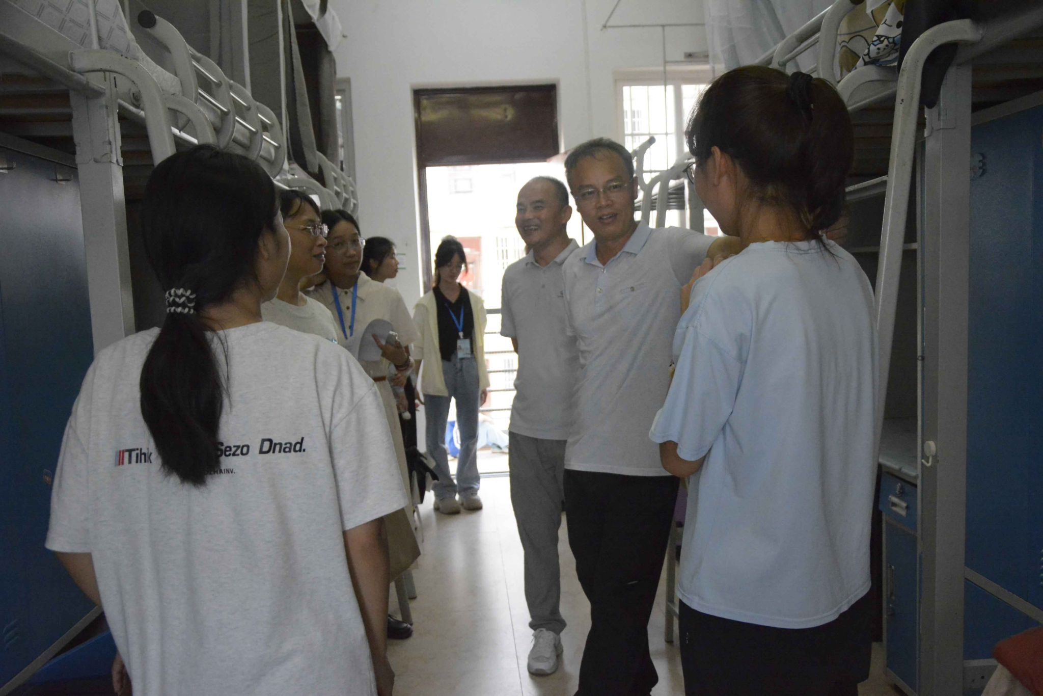 领导和老师们的到来受到了新生们的热烈欢迎。他们逐一走进115间新生宿舍,与新生们亲切交谈,详细询问同学们来自哪里、对新环境是否适应、宿舍是否有安全隐患、宿舍设施是否齐全等问题。领导老师们鼓励新生们尽快适应大学生活,积极融入新的集体,珍惜大学时光,努力学习专业知识,提升自身综合素质。老师们也细心地提醒新生们要注意宿舍安全,妥善保管个人财物,遵守学校的规章制度。同时,还对宿舍的卫生和设施情况进行了检查,确保新生们有一个安全、舒适的居住环境。