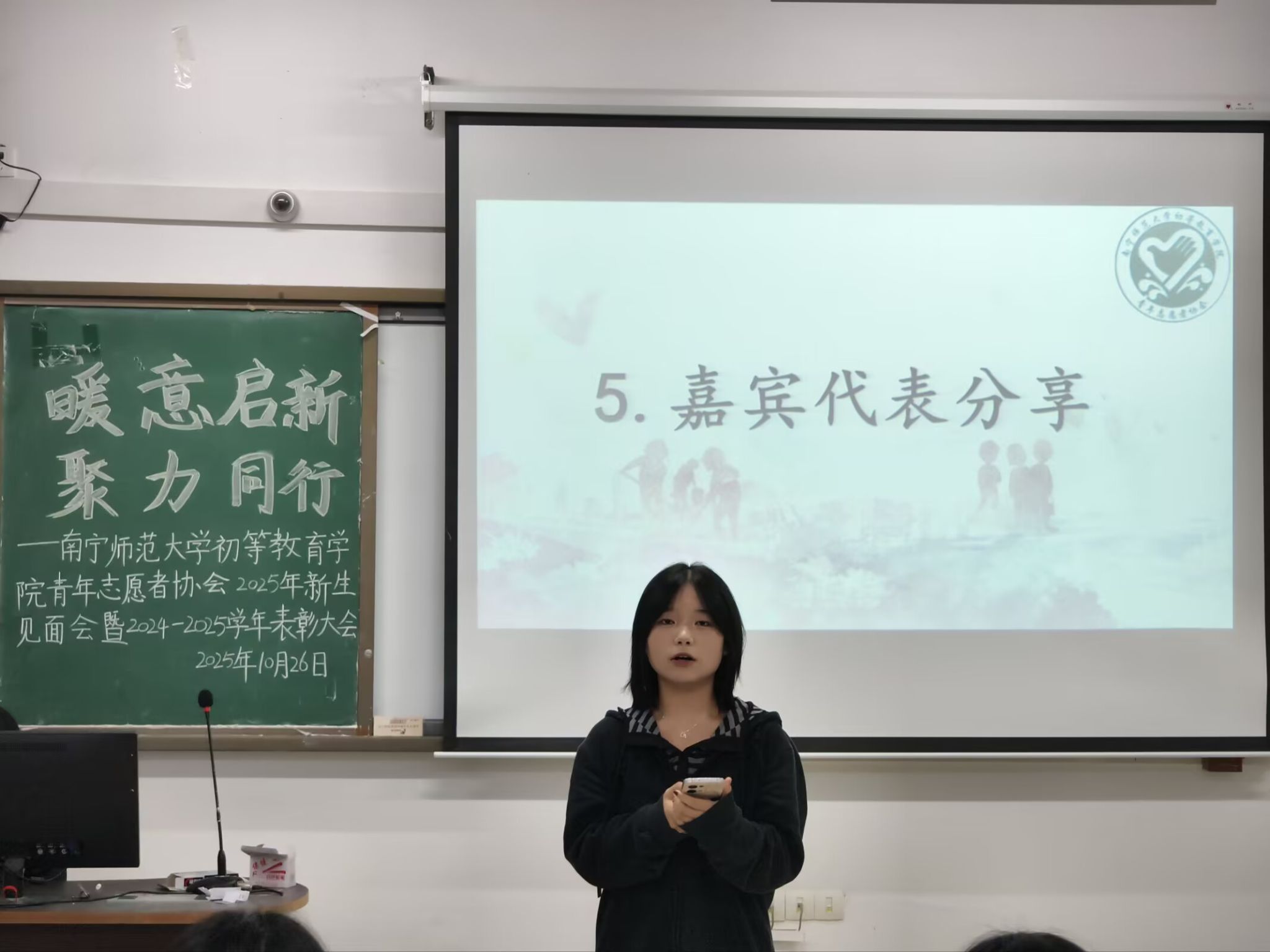 随后,到场嘉宾代表分享志愿感悟,为在场成员带来启发。活动尾声,秦晴老师总结大会、鼓励新生投身志愿实践,期望学院青年志愿者协会成员在服务中成长、助力学院公益。