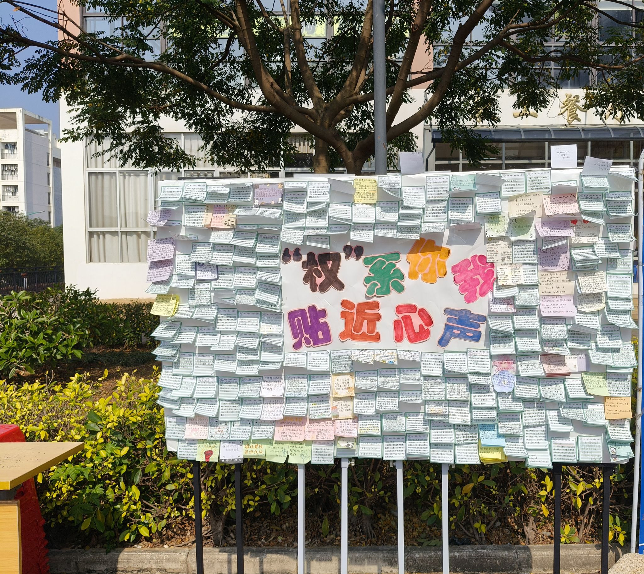 在五合校区桃李苑食堂侧门处举办“‘权’系你我,贴近心声”权益主题比赛活动,五合校区约100名学生积极参与。