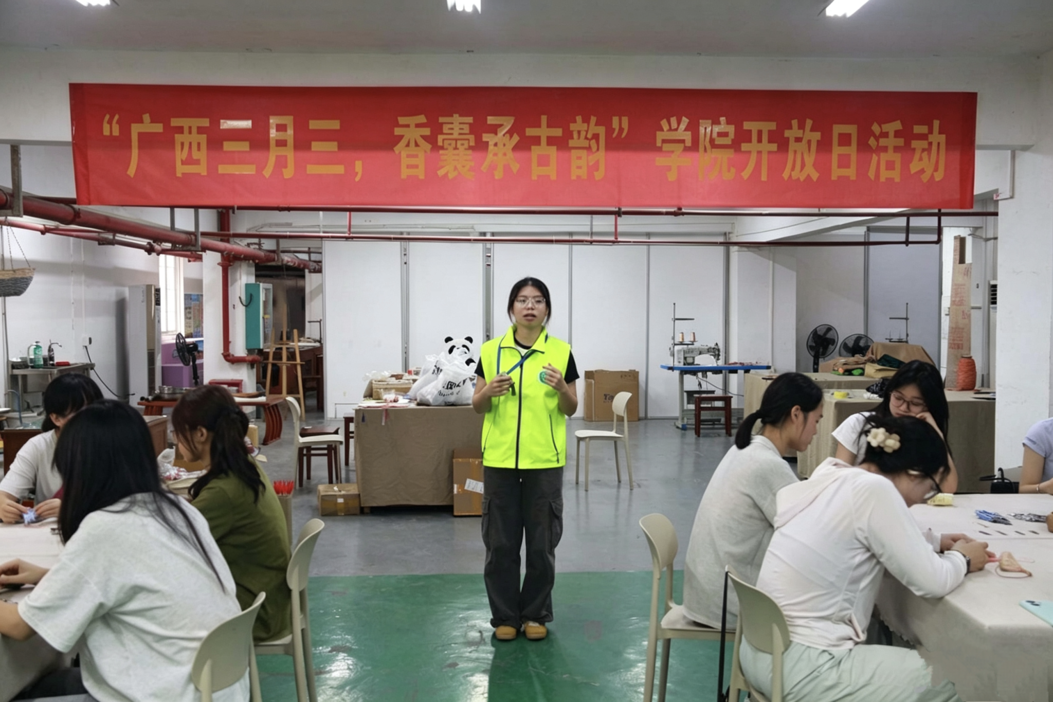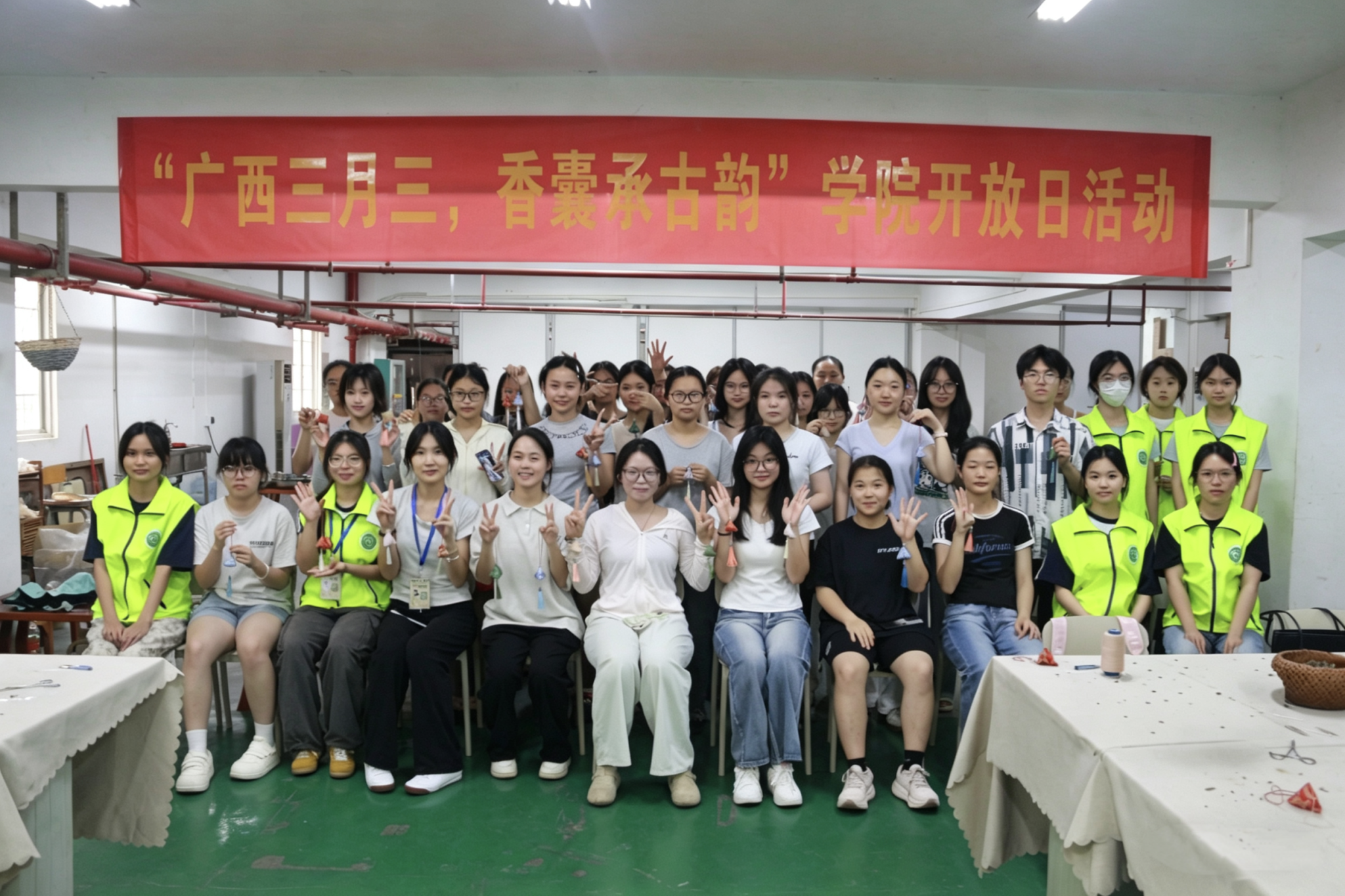 在五合校区劳动吧举办“广西三月三,香囊承古韵”学院开放日活动。五合校区各学院学生代表参与活动。