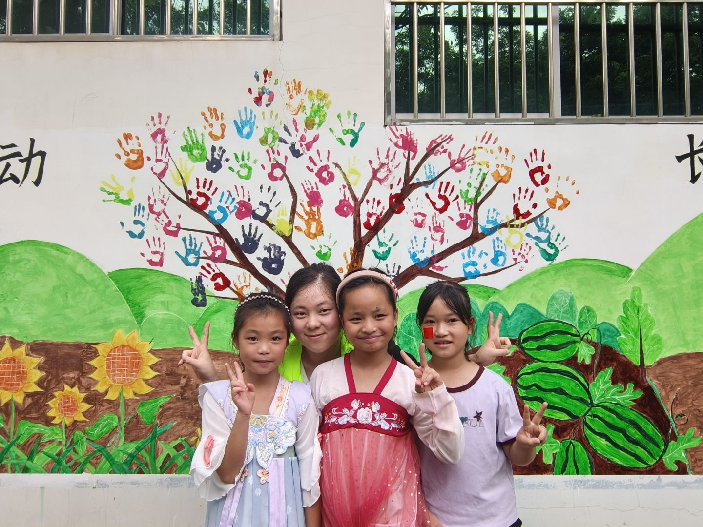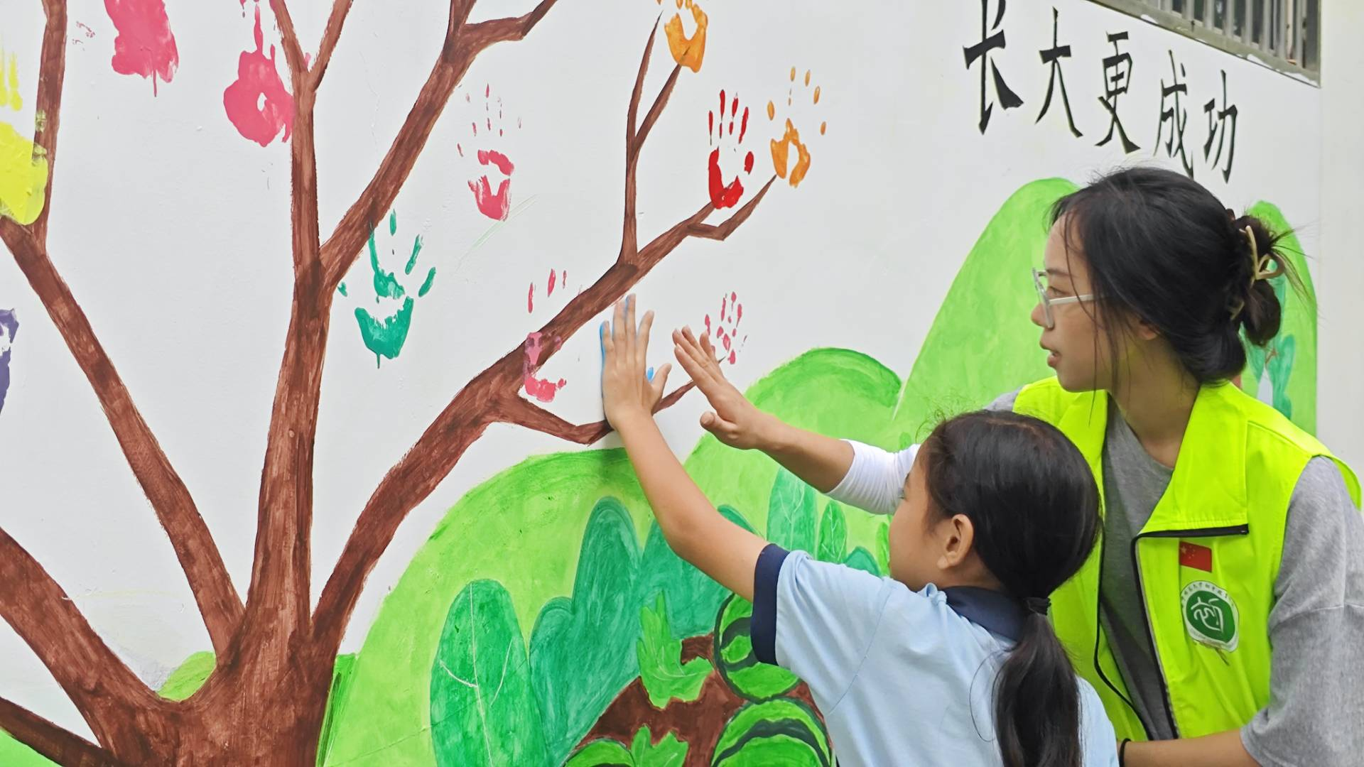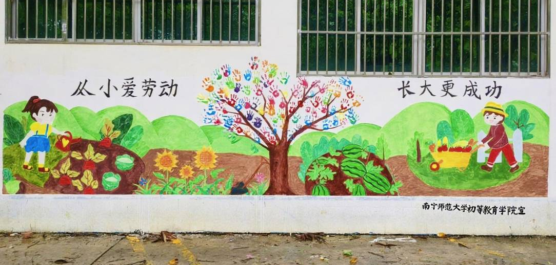 “南疆育苗”实践队在凭祥市民族希望学校开展“小手绘未来 劳动筑梦想”主题墙绘活动。