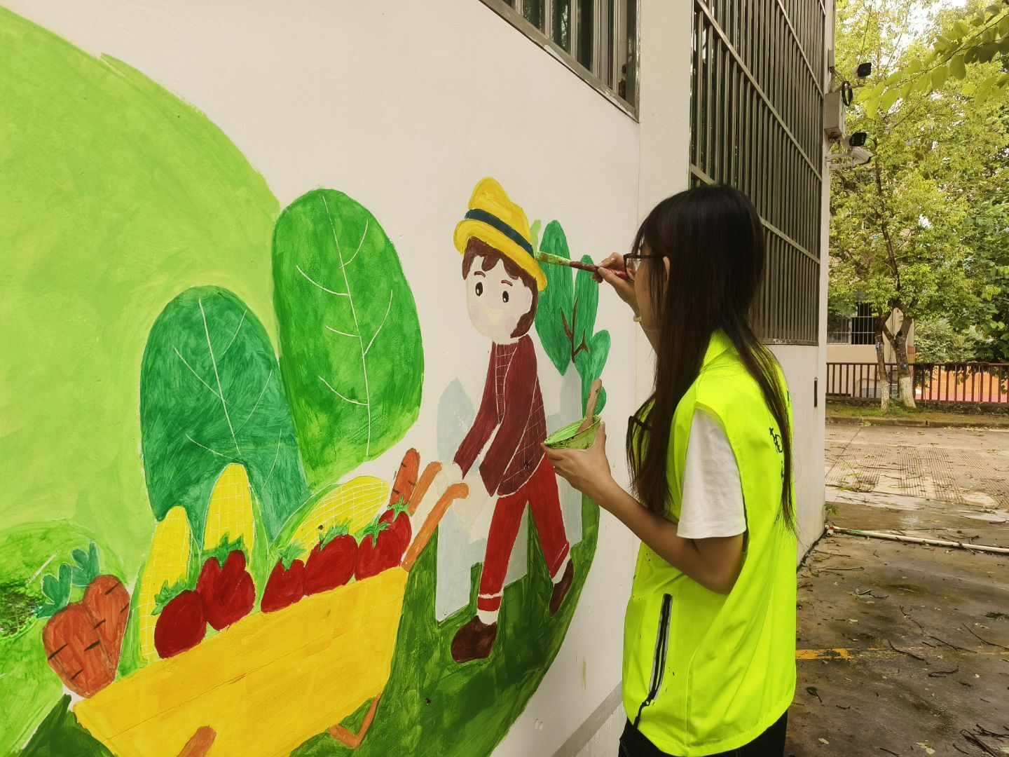 此次活动通过实践队员与小学生共同创作的方式,将劳动教育理念以艺术形式生动呈现,不仅提升了小朋友的审美能力,更有助于培养小朋友们热爱劳动、尊重劳动的美好品质。同时,墙绘作品也将长期保留在学校墙面,成为校园劳动教育的生动教材。