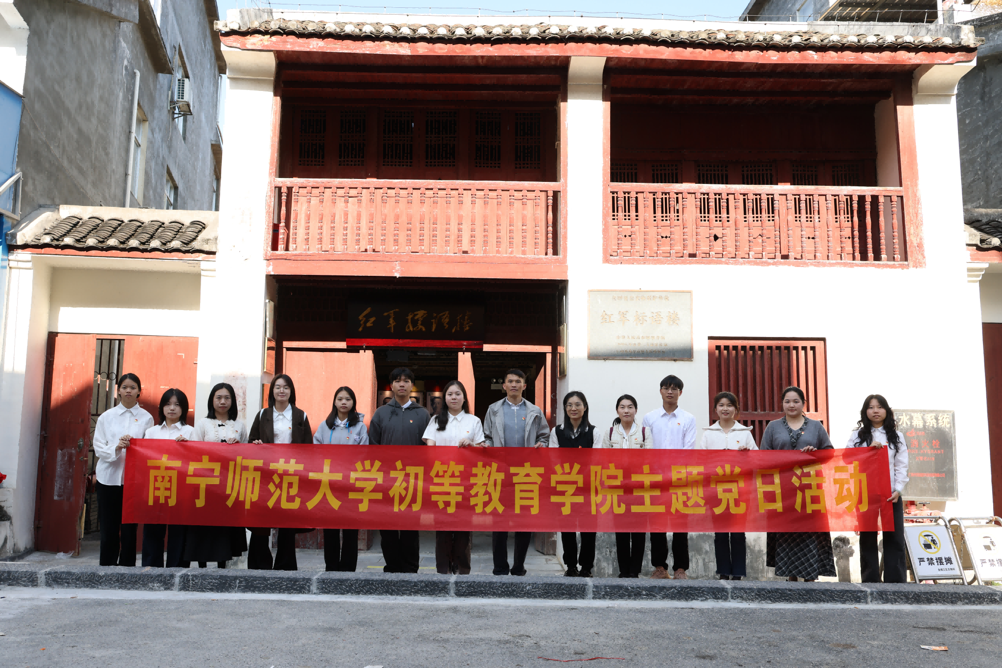 随后,党员代表前往全国重点文物保护单位——红军标语楼。在一幅幅历经风雨侵蚀却依旧清晰的革命标语前,大家驻足聆听讲解,追溯革命先辈在烽火岁月中坚守信仰、为民族解放事业抛头颅洒热血的峥嵘历程。