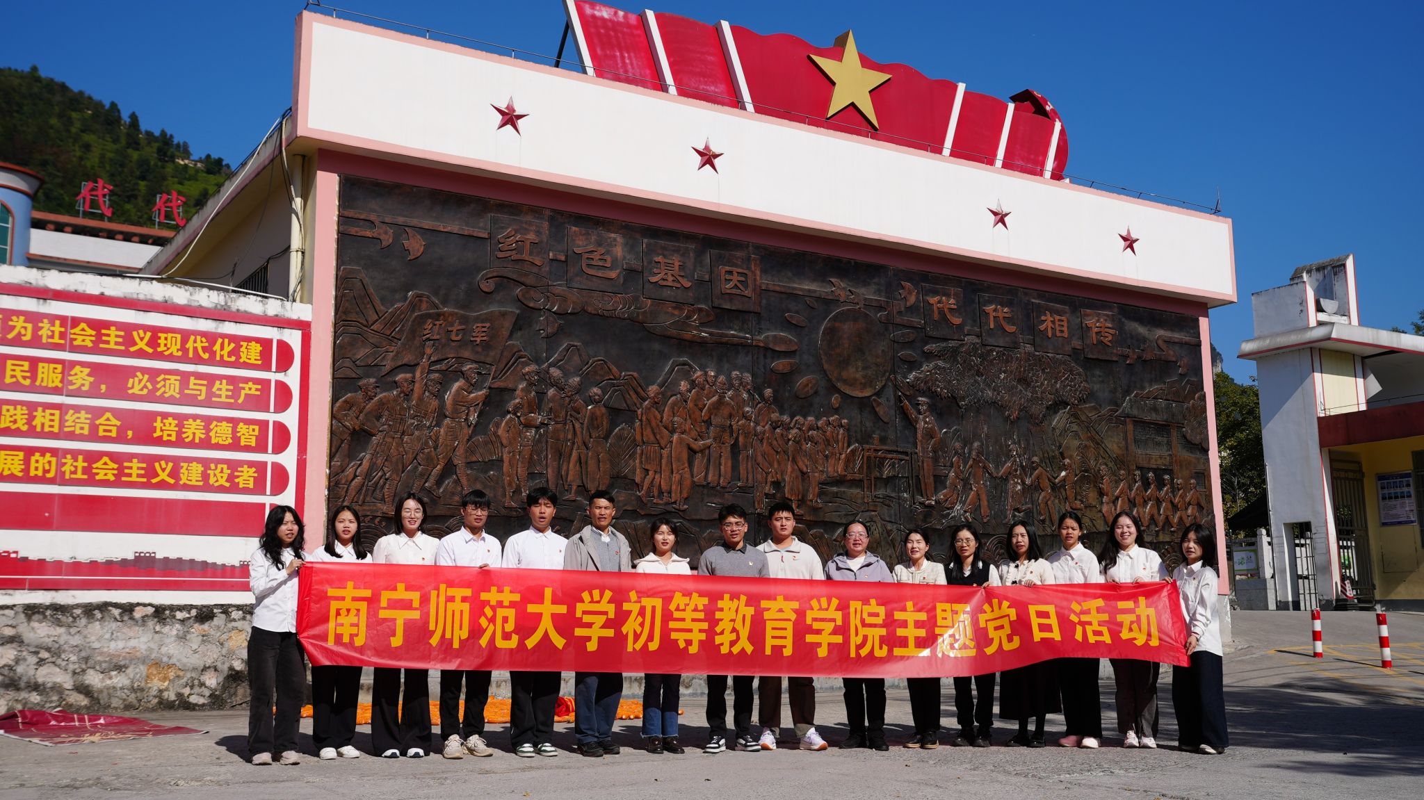 在党委组织员宁英烈的带领下,组织学生党支部党员代表前往河池市金城江区开展“党建引领守初心 红色传承担使命”主题党日活动。