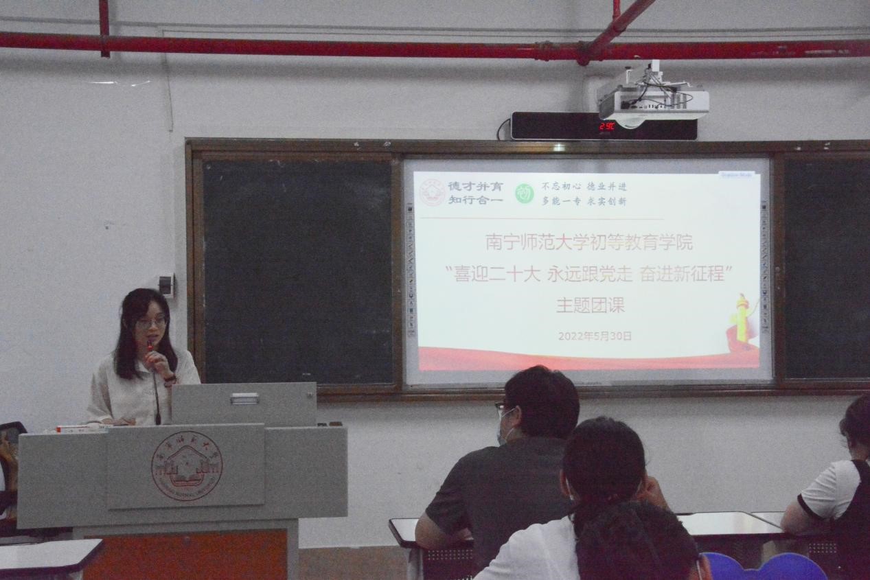 在长岗校区综合楼407室开展“喜迎二十大 永远跟党走 奋进新征程”主题团课。此次团课由学院团委书记秦晴主讲,团委学生会代表以及各班团干代表参与。