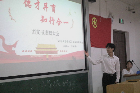会议伊始,主持人介绍了会议的程序与考核细则。随后,各团支部书记依次上台述职,全面总结与梳理本班团支部在过去一学年的团建工作,并从组织建设、思想政治引领、服务青年、成绩与荣誉方面重点进行汇报。紧接着,三位老师对各班级团支书进行评分考核。