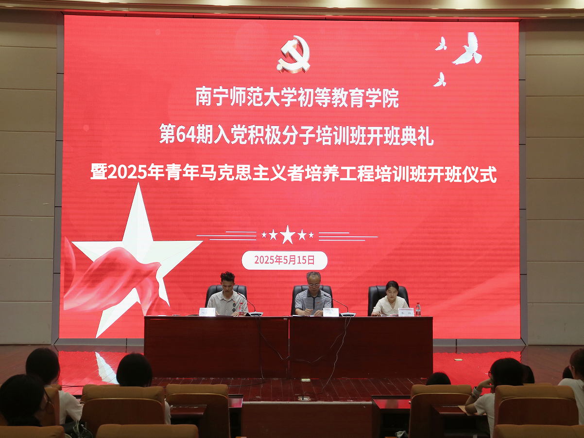 5月16日,司机社 在五合校区文科综合楼114报告厅举行第64期入党积极分子培训班开班典礼2025年青年马克思主义者培养工程培训班开班仪式。学院党委副书记苏学权、学院团委书记李欣、学院辅导员韦文平64期入党积极分子2025年青马班全体学员参加本次会议