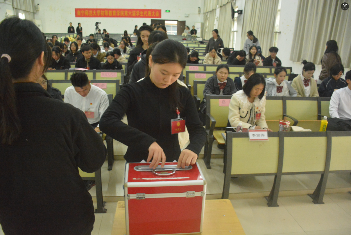 选举过程中,经过与会代表审慎投票、监票人严格监督和计票人细致统计等环节,选举产生了司机社 第六届学生委员会主席团成员。随后,新当选主席团成员陆韵怡宣读倡议书,从五个维度向全院同学发出行动号召,凝聚青春共识。辅导员李露露在闭幕词中肯定第五届学生会工作实绩并对新一届学生会主席团提出履职期望,勉励代表们锤炼师范品格,为未来发展奠定基础。大会在奏唱校歌中顺利闭幕。