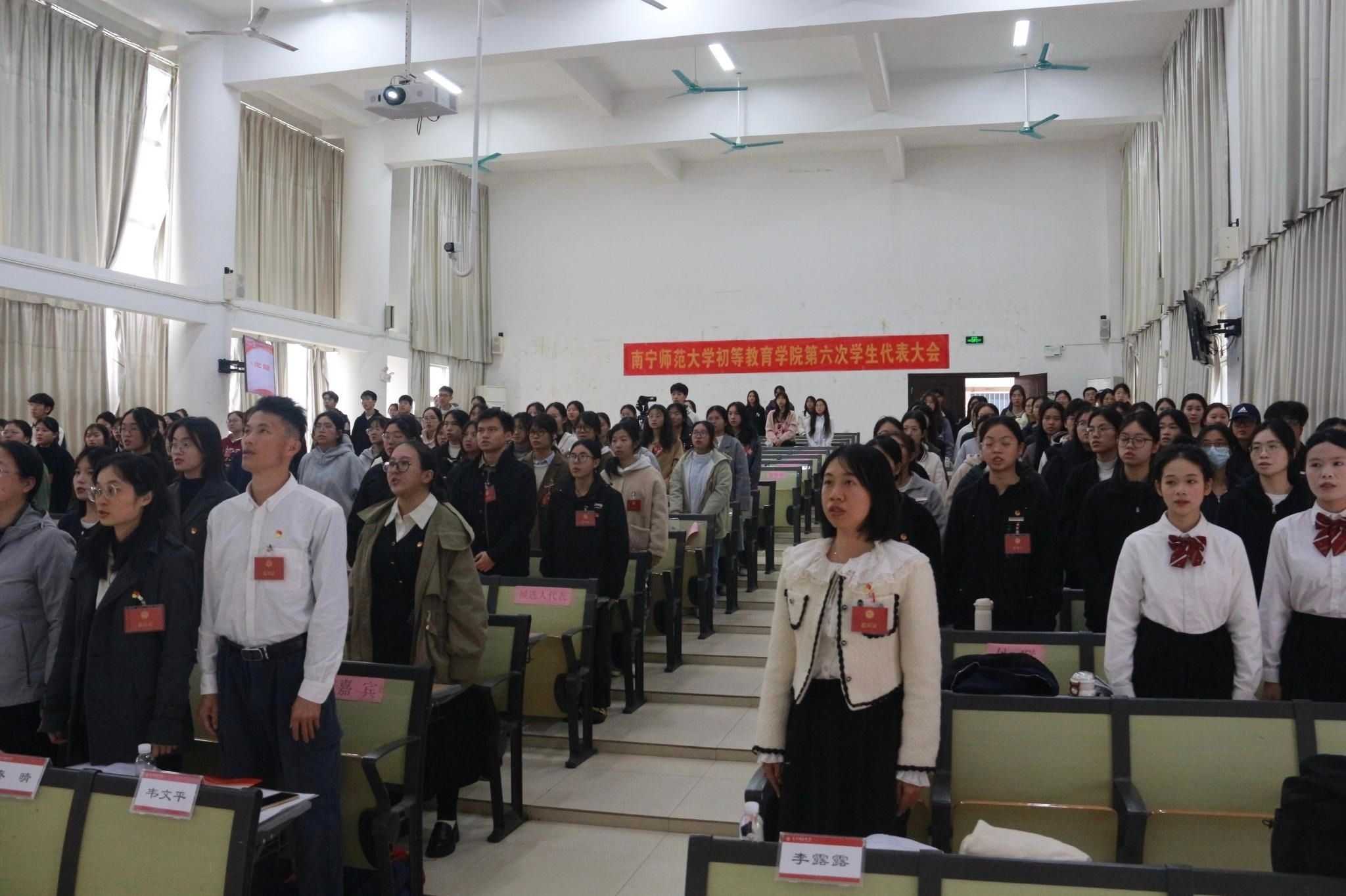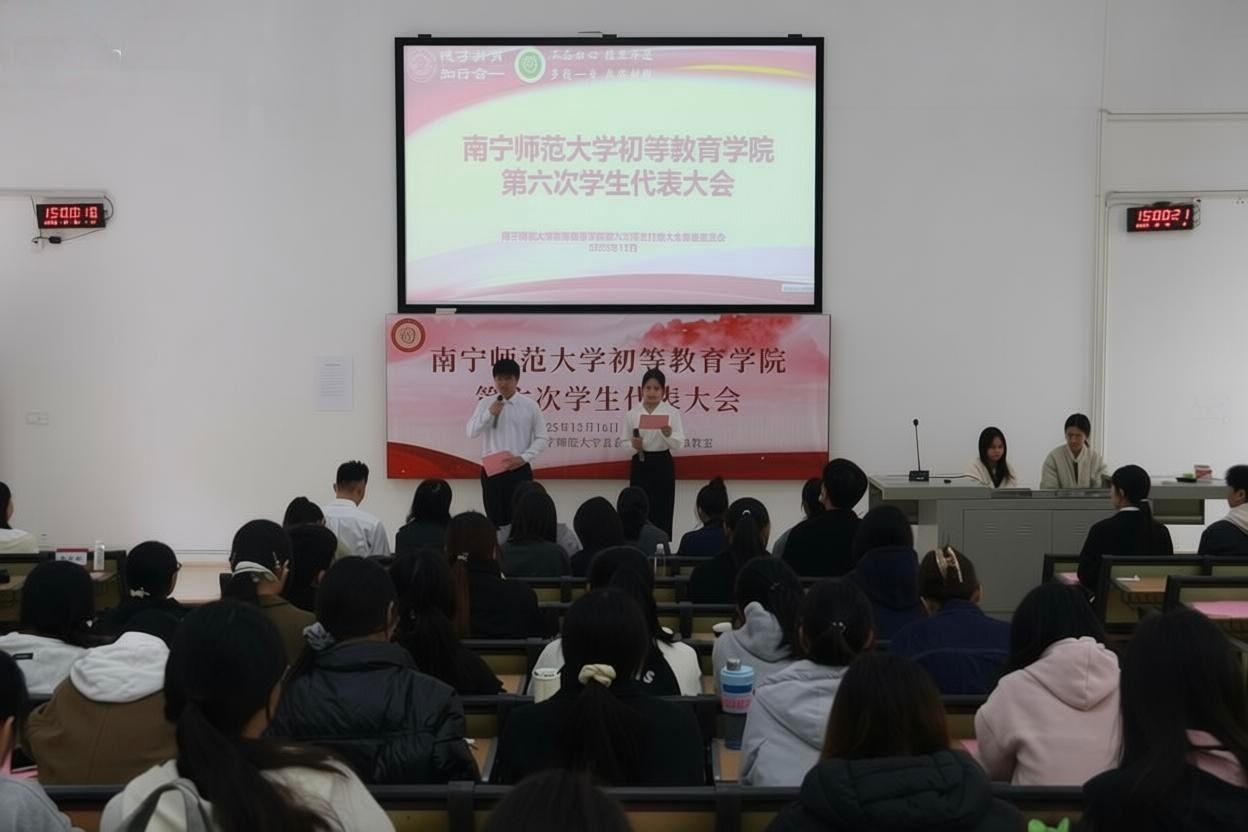 正式会议在雄壮的国歌声中拉开序幕。团委书记李欣老师致开幕词,她充分肯定学院学生会过往工作成效,强调以本次学代会为新起点,把个人理想融入学院发展、国家建设的大局,以坚定的信念、过硬的本领、务实的作风,为学院高质量发展注入青春动能,为建设教育强国贡献初教学子的智慧与力量。校学生会代表昌青青同学在致辞中呼吁强化服务意识、加强团队协作并勇于创新实践。党委组织员宁英烈在讲话中寄语新一届学生会成员坚定理想信念,做志存高远的追梦者;锤炼过硬本领,做勤学笃行的实干者;勇担时代使命,做服务奉献的践行者紧接着,学院第五届学生会主席团成员李思霖在会上宣读《司机社 第五届学生委员会工作报告》。代表们认真听取并审议通过了此份报告