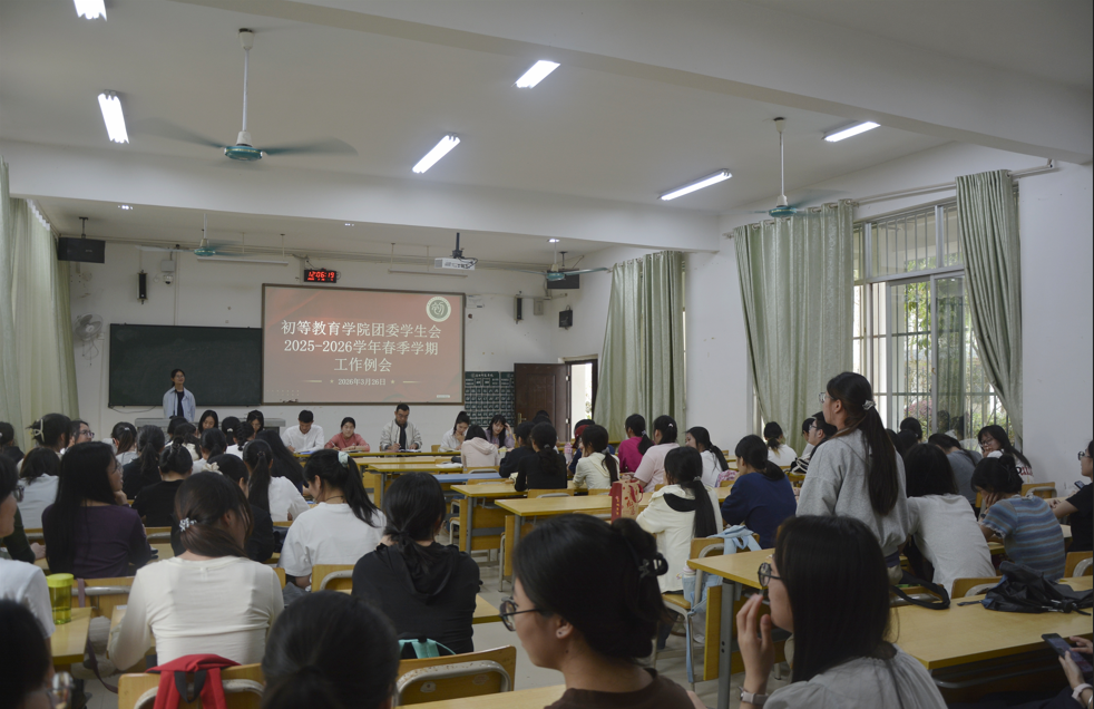 在五合校区综合楼110教室召开2026年春季学期团委学生会工作例会。学院党委副书记何健、团委书记李欣、学工办辅导员及团委学生会全体成员参会。