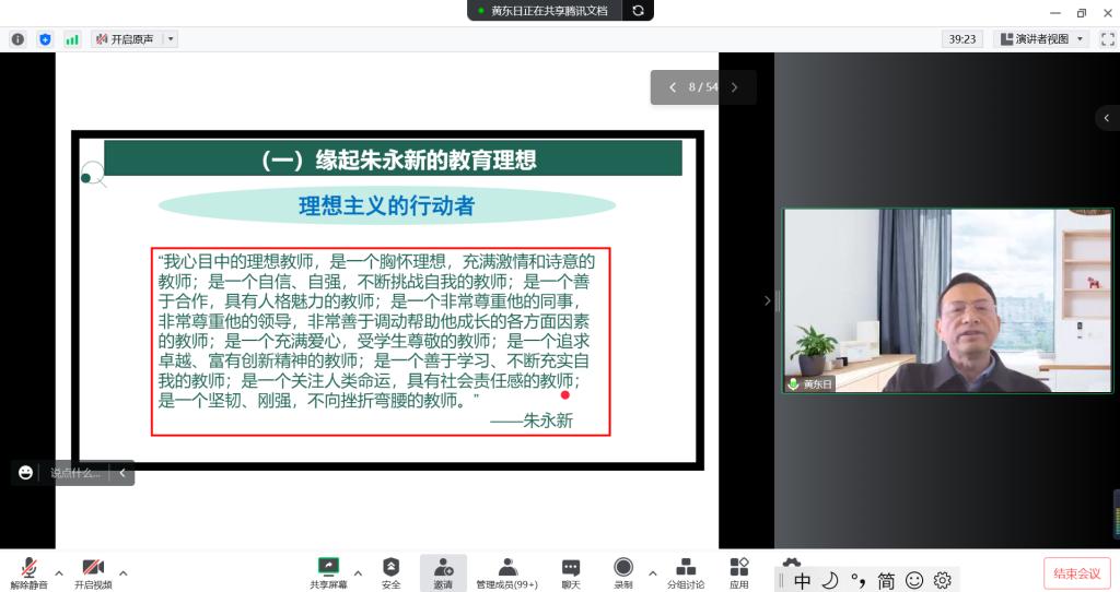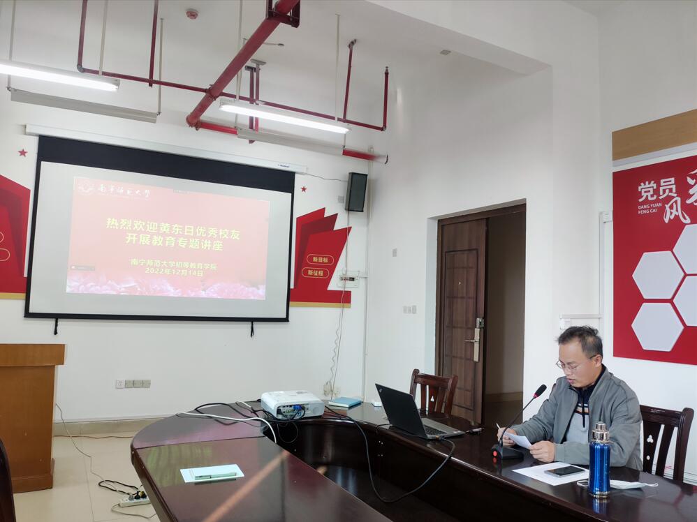 邀请原南宁民族师范学校1979级优秀校友黄东日作题为《过一种幸福完整的教育生活》的线上教育专题讲座。讲座由学院党委苏学权副书记主持。