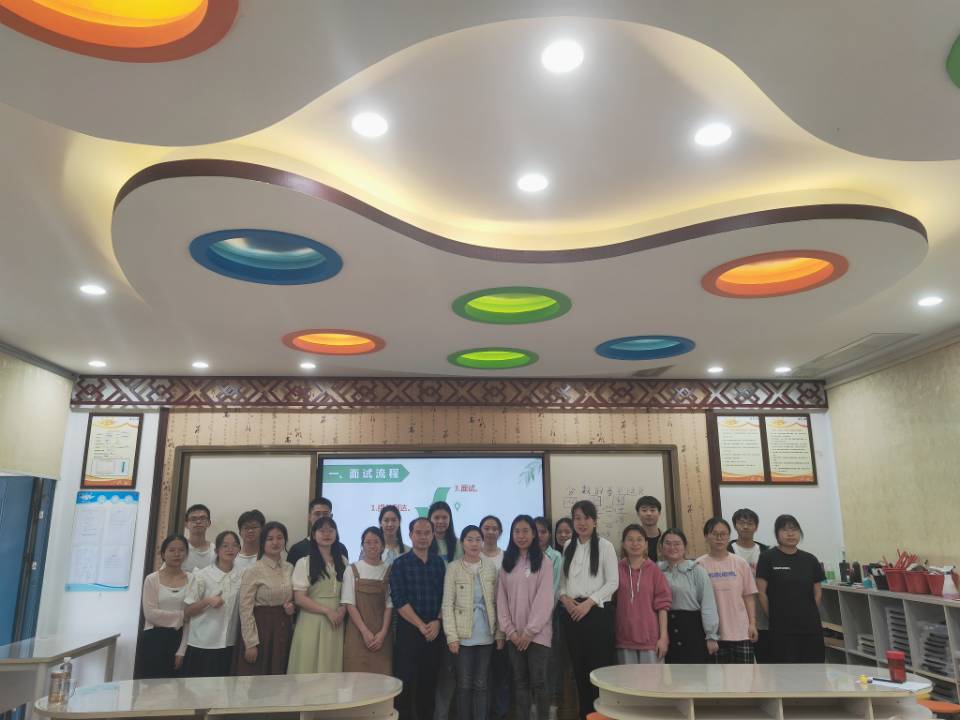 的求学经历,表达了对母校的感恩之情,并讲述自身6年骨干教师的成长历程。讲座中,刘老师从面试流程、课标解读、说课技巧、试讲技巧展开培训。接着,毕业生们踊跃报名上台展示说课、试讲,刘老师针对同学们的表现进行专业指导,并组织同学们分小组进行讨论,交流面试经验。最后,辅导员李露露对本次培训进行总结,鼓励同学们要奋发有为、敢闯敢试、开拓进取,全面提升自己的就业竞争力。