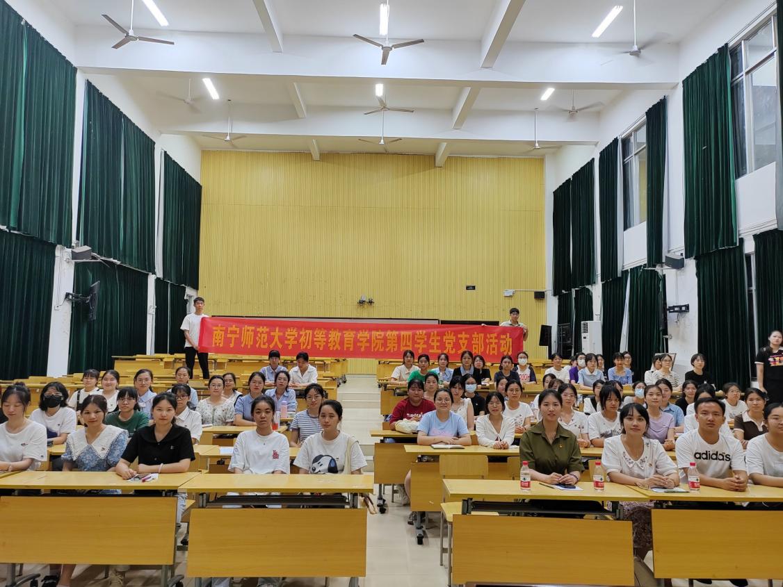 第四学生党支部书记覃诗雅主持,支部全体党员参加活动。