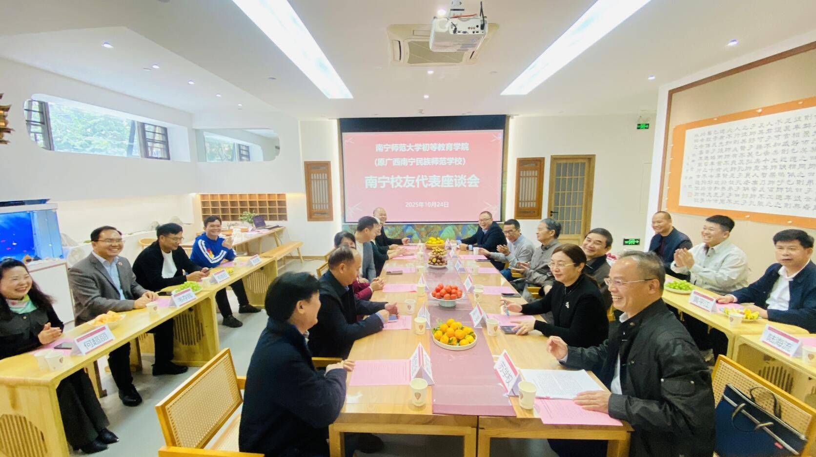 随后,校友联系处负责人南宁市金太阳教育培训学校 蒙旭文、语墨轩书院黄清瑞、广西德远教育科技有限公司韦德石;校友理事代表初等教育院退休教师梁春莲、陈寿强,广西书画院杨世全;校友代表广西紫杉架子鼓黄业生、广西华唐供应链管理有限公司黄平江、南宁奥想创晨教育科技有限公司王宇彬、南宁市六一学校黄铨兵、广西南宁市良庆区海晖路小学何超丽、广西中幼教育管理有限公司韦存辉等校友都逐一发言。校友们分别回忆了自己在原南宁民族师范学校就读期间和学校、老师、同学们相识、相处的深厚情谊,并且就自己的所学、所感、所思和所悟,结合自己毕业后多年的工作和成长经历进行了分享,分享了各自在教育、科技、管理等不同行业领域的实践经验与感悟,表达对母校的感恩之情;并对南宁校友联络处后续运营中的人员分工、活动策划等、与母校及其他地区校友联络的联动机制等未尽事宜进行交流,提出意见和建议,同时表达积极参与联络处活动、支持母校和学院发展的意愿。